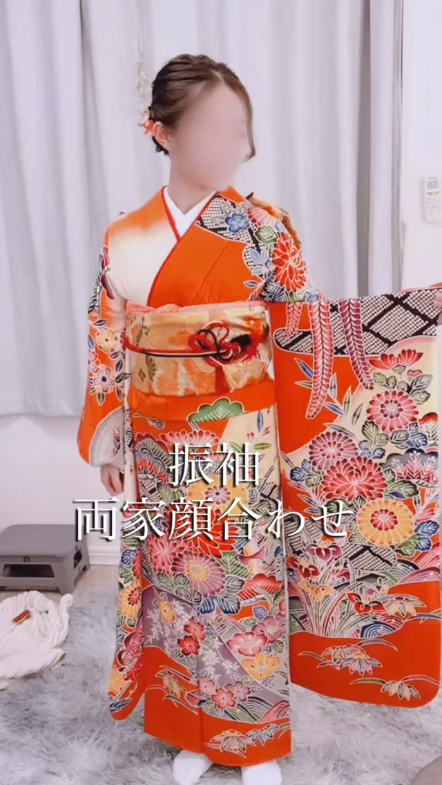 振袖 振袖着付け・ヘアセット両家の顔合わせへ…✨オレンジのお着物が本当にお似合いでした♡大切な日にご来店くださり、本当にありがとうございました💐#着付け東京#千歳烏山着付け#kimono#着物女子#両家顔合わせ…